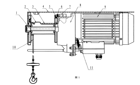 目前使用的微型電動葫蘆的鋼絲繩采用多層繞線技術,不適合采用大中型電動葫蘆上的上、下限位保護裝置,因此,目前的微型電動葫蘆只有配置上限位保護裝置,而沒有下限位保護裝置。沒有下限位的微型電動葫蘆,當貨物提升到額定的高度后,通過固定在鋼絲繩吊鉤之上的配重塊帶動上限位架觸動上限位開關,使電動葫蘆停止運行,從而起到安全保護作用;但是,當微型電動葫蘆往下牽引工作時,一旦行程超過鋼絲繩的額定長度后,如不及時關閉電源而任其運行,即會導致鋼絲繩在繩筒上反繞,下降的貨物會重新向上提升,由于反繞鋼絲繩是緊壓上限位內側工作,如不及時采取措施,對鋼絲繩和上限位架裝置均會產生嚴重的損害,存在著嚴重的安全隱患。