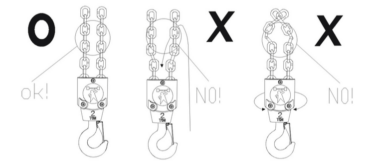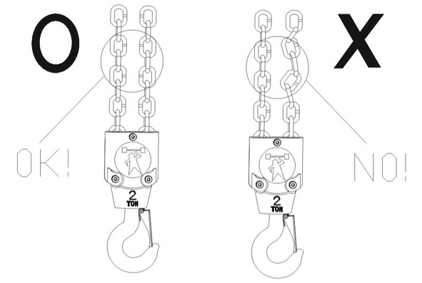 鏈條標(biāo)準(zhǔn)使用方法中嚴(yán)禁于兩鏈中間翻轉(zhuǎn)或左右旋。