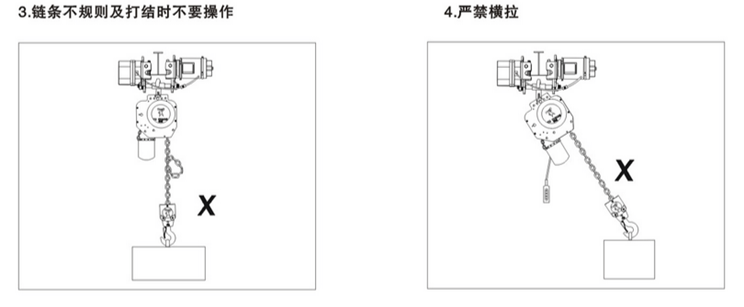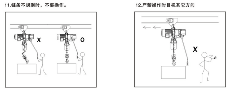 環(huán)鏈電動(dòng)葫蘆在使用中有很多方面是需要注意的,凌鷹根據(jù)多年的行業(yè)經(jīng)驗(yàn)總結(jié)了一些使用守則,下面通過一組圖片進(jìn)行解說。